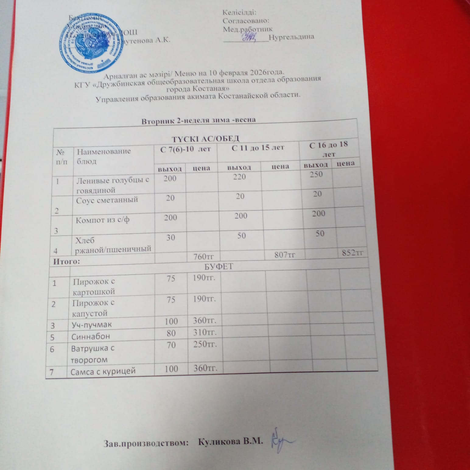 Ас мәзірі 10.02.2026