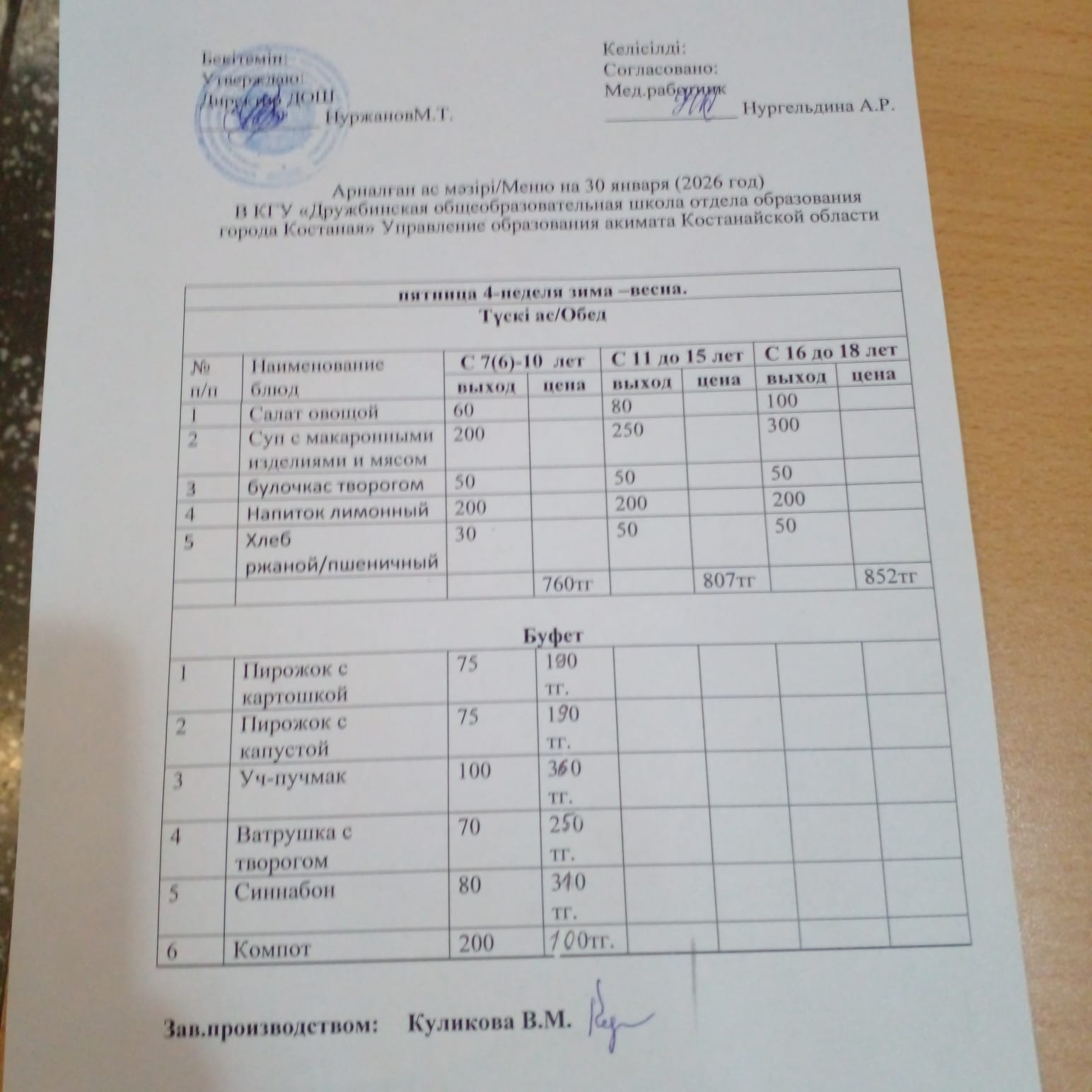 Ас мәзірі 30.01.2026